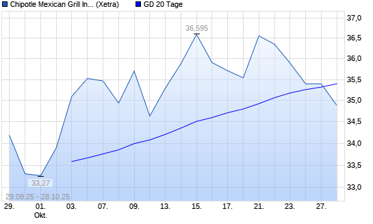 Mit dem Rücksetzer auf 35,18 EUR hat die Chipotle Mexican Grill-Aktie am 27.10.2025 die 20-Tage-Linie nach unten gekreuzt.Die Chipotle Mexican Grill-Aktie befindet sich seit dem 17.02.2025 ...weiterlesen