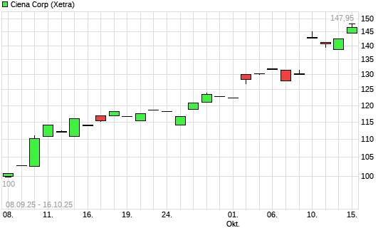 Mit dem Anstieg auf 149,65 EUR hat die Ciena-Aktie (ISIN US1717793095) am 15.10.2025 ein neues 10-Jahres-Hoch erreicht und damit den Kurs vom 13.10.2025 eingestellt.Die Ciena-Aktie befindet ...weiterlesen
