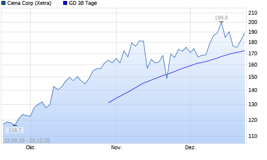 Mit dem Anstieg auf 193,00 EUR hat die Ciena-Aktie am 19.12.2025 die 38-Tage-Linie nach oben gekreuzt.Die Ciena-Aktie befindet sich seit dem 15.07.2025 im langfristigen Aufwärtstrend und hat ...weiterlesen