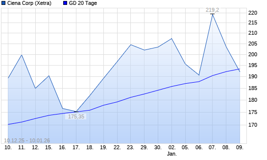 Mit dem Anstieg auf 197,55 EUR hat die Ciena-Aktie am 13.01.2026 die 20-Tage-Linie nach oben gekreuzt.Die Ciena-Aktie befindet sich seit dem 15.07.2025 im langfristigen Aufwärtstrend und hat ...weiterlesen