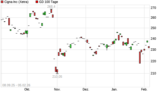 Mit dem Anstieg auf 249,00 EUR hat die Cigna-Aktie am 06.02.2026 die 100-Tage-Linie nach oben gekreuzt.Die Cigna-Aktie befindet sich seit dem 13.05.2025 im langfristigen Abwärtstrend und hat ...weiterlesen