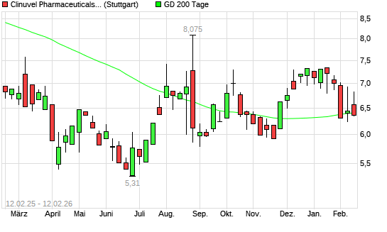 Mit dem Rücksetzer auf 6,35 EUR hat die Clinuvel Pharmaceuticals-Aktie am 11.02.2026 die 200-Tage-Linie nach unten gekreuzt.Die Clinuvel Pharmaceuticals-Aktie befand sich seit dem 03.02.2026 ...weiterlesen