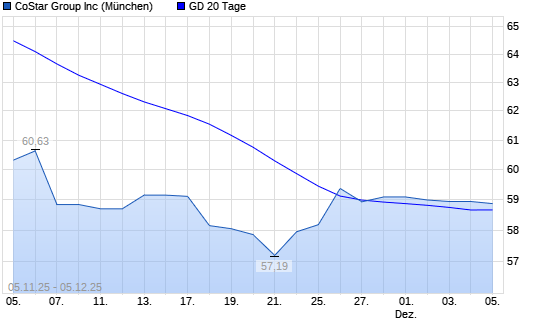 Mit dem Rücksetzer auf 57,61 EUR hat die CoStar-Aktie am 08.12.2025 die 20-Tage-Linie nach unten gekreuzt.Die CoStar-Aktie befindet sich seit dem 07.10.2025 im langfristigen Abwärtstrend ...weiterlesen