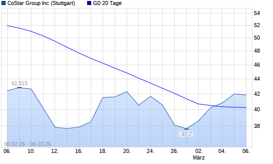 Mit dem Anstieg auf 40,15 EUR hat die CoStar-Aktie am 05.03.2026 die 20-Tage-Linie nach oben gekreuzt.Die CoStar-Aktie befindet sich seit dem 07.10.2025 im langfristigen Abwärtstrend ...weiterlesen