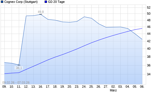 Mit dem Rücksetzer auf 44,29 EUR hat die Cognex-Aktie am 06.03.2026 die 20-Tage-Linie nach unten gekreuzt.Die Cognex-Aktie befindet sich seit dem 03.02.2026 im ...weiterlesen