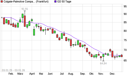 Mit dem Anstieg auf 68,78 EUR hat die Colgate-Palmolive-Aktie am 08.01.2026 die 100-Tage-Linie nach oben gekreuzt.Die Colgate-Palmolive-Aktie befindet sich seit dem 11.03.2025 im langfristigen ...weiterlesen