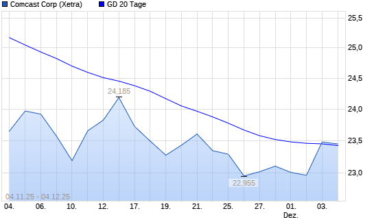 Mit dem Anstieg auf 23,36 EUR hat die Comcast-Aktie am 03.12.2025 die 20-Tage-Linie nach oben gekreuzt.Die Comcast-Aktie befindet sich seit dem 06.01.2025 im langfristigen Abwärtstrend und hat ...weiterlesen