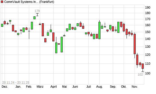 Mit dem Rücksetzer auf 103,00 EUR hat die Commvault Systems-Aktie (ISIN US2041661024) am 19.11.2025 ein neues 12-Monats-Tief erreicht und damit den Kurs vom 18.11.2025 eingestellt.Die Commvault ...weiterlesen