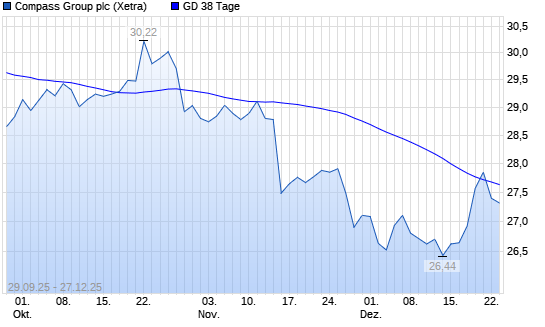 Mit dem Anstieg auf 27,41 EUR hat die Compass Group-Aktie am 26.12.2025 die 38-Tage-Linie nach oben gekreuzt.Die Compass Group-Aktie befindet sich seit dem 25.07.2025 im langfristigen Abwärtstrend ...weiterlesen