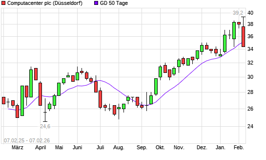 Mit dem Rücksetzer auf 33,80 EUR hat die Computacenter-Aktie am 06.02.2026 die 50-Tage-Linie nach unten gekreuzt.Die Computacenter-Aktie befindet sich seit dem 16.09.2025 im langfristigen ...weiterlesen