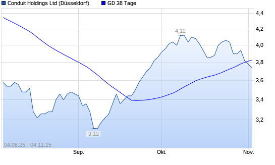 Mit dem Rücksetzer auf 3,68 EUR hat die Conduit Holdings-Aktie am 03.11.2025 die 38-Tage-Linie nach unten gekreuzt.Die Conduit Holdings-Aktie befindet sich seit dem 10.12.2024 im langfristigen ...weiterlesen