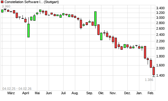 Mit dem Rücksetzer auf 1.402,00 EUR hat die Constellation Software-Aktie (ISIN CA21037X1006) am 03.02.2026 ein neues 3-Jahres-Tief erreicht und damit den Kurs vom 13.03.2023 eingestellt.Die ...weiterlesen