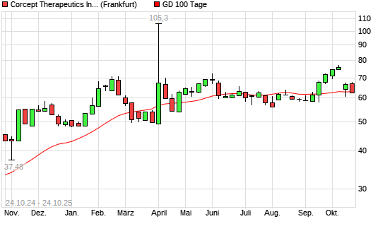 Mit dem Rücksetzer auf 62,36 EUR hat die Corcept Therapeuticsorpora-Aktie am 23.10.2025 die 100-Tage-Linie nach unten gekreuzt.Die Corcept Therapeuticsorpora-Aktie befindet sich seit dem ...weiterlesen