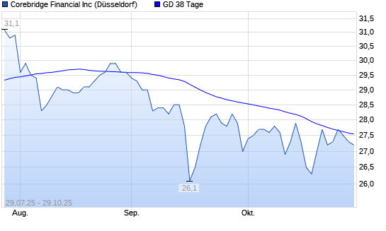 Mit dem Rücksetzer auf 27,50 EUR hat die Corebridge Financial-Aktie am 28.10.2025 die 38-Tage-Linie nach unten gekreuzt.Die Corebridge Financial-Aktie befindet sich seit dem 05.09.2025 ...weiterlesen