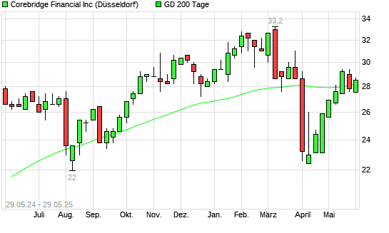 Mit dem Anstieg auf 28,60 EUR hat die Corebridge Financial-Aktie am 28.05.2025 die 200-Tage-Linie nach oben gekreuzt.Die Corebridge Financial-Aktie befand sich seit dem 22.05.2025 im langfristigen ...weiterlesen