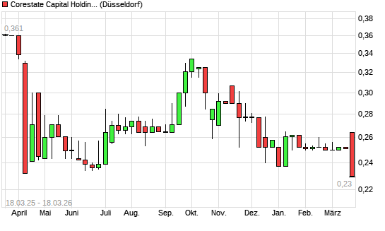 Mit dem Rücksetzer auf 0,23 EUR hat die Corestate Capital Holding-Aktie (ISIN LU1296758029) am 17.03.2026 ein neues 6-Monats-Tief erreicht und damit den Kurs vom ...weiterlesen
