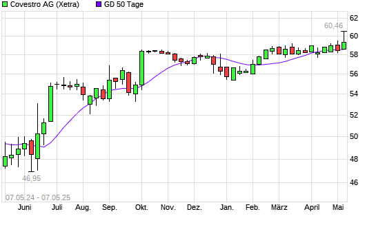 Mit dem Anstieg auf 58,88 EUR hat die Covestro-Aktie am 06.05.2025 die 50-Tage-Linie nach oben gekreuzt.Die Covestro-Aktie befindet sich seit dem 11.06.2024 im langfristigen Aufwärtstrend und ...weiterlesen