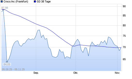 Mit dem Rücksetzer auf 68,50 EUR hat die Crocs-Aktie am 04.11.2025 die 38-Tage-Linie nach unten gekreuzt.Die Crocs-Aktie befindet sich seit dem 16.05.2025 im langfristigen Abwärtstrend ...weiterlesen