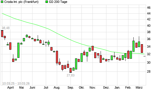 Mit dem Rücksetzer auf 31,50 EUR hat die Croda International-Aktie am 09.03.2026 die 200-Tage-Linie nach unten gekreuzt.Die Croda International-Aktie befand sich seit dem ...weiterlesen