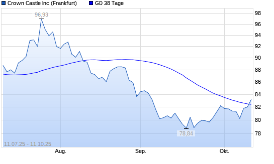 Mit dem Anstieg auf 83,22 EUR hat die Crown Castle International-Aktie am 10.10.2025 die 38-Tage-Linie nach oben gekreuzt.Die Crown Castle International-Aktie befindet sich seit dem 11.08.2025 ...weiterlesen