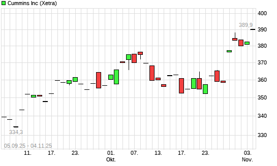 Mit dem Anstieg auf 385,70 EUR hat die Cummins-Aktie (ISIN US2310211063) am 03.11.2025 ein neues All-Time-High erreicht und damit den Kurs vom 31.10.2025 eingestellt.Die ...weiterlesen