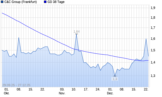 Mit dem Anstieg auf 1,45 EUR hat die C&C GROUP-Aktie am 26.12.2025 die 38-Tage-Linie nach oben gekreuzt.Die C&C GROUP-Aktie befindet sich seit dem 18.09.2025 im langfristigen Abwärtstrend ...weiterlesen