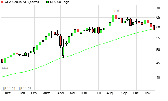 Mit dem Rücksetzer auf 58,85 EUR hat die GEA Group-Aktie am 14.11.2025 die 200-Tage-Linie nach unten gekreuzt.Die GEA Group-Aktie befand sich seit dem 12.11.2025 im langfristigen Aufwärtstrend ...weiterlesen