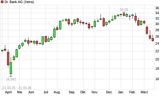 Mit dem Rücksetzer auf 24,59 EUR hat die Deutsche Bank-Aktie (ISIN DE0005140008) am 20.03.2026 ein neues 6-Monats-Tief erreicht und damit den Kurs vom 19.03.2026 ...weiterlesen