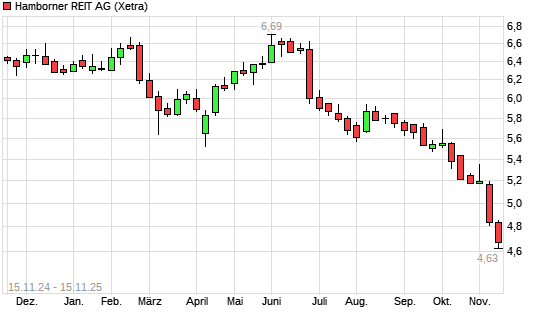 Mit dem Rücksetzer auf 4,62 EUR hat die Hamborner REIT-Aktie (ISIN DE000A3H2333) am 14.11.2025 ein neues 10-Jahres-Tief erreicht und damit den Kurs vom 12.11.2025 eingestellt.Die Hamborner ...weiterlesen