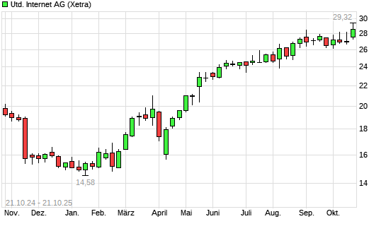 Mit dem Anstieg auf 29,12 EUR hat die United Internet-Aktie (ISIN DE0005089031) am 20.10.2025 ein neues 3-Jahres-Hoch erreicht und damit den Kurs vom 07.10.2025 eingestellt.Die United Internet-Aktie ...weiterlesen
