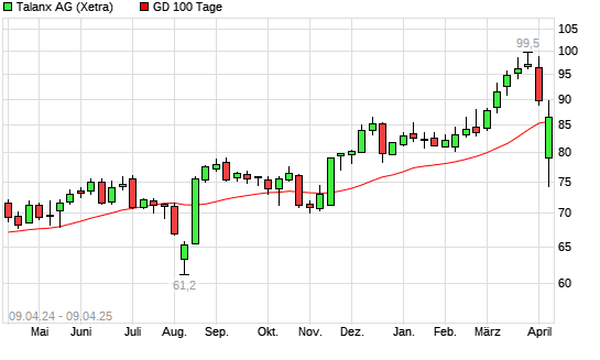 Mit dem Anstieg auf 87,70 EUR hat die Talanx-Aktie am 08.04.2025 die 100-Tage-Linie nach oben gekreuzt.Die Talanx-Aktie befindet sich seit dem 06.11.2024 im langfristigen Aufwärtstrend ...weiterlesen