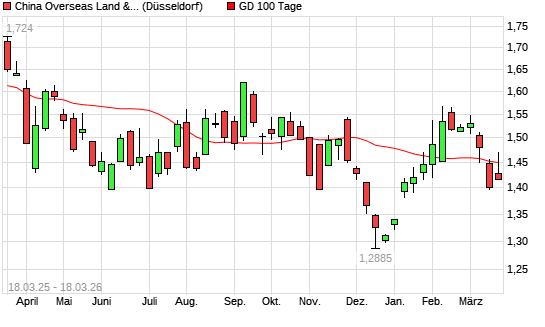 Mit dem Anstieg auf 1,47 EUR hat die China Overseas Land & Investment-Aktie am 17.03.2026 die 100-Tage-Linie nach oben gekreuzt.Die China Overseas Land & Investment-Aktie befindet ...weiterlesen