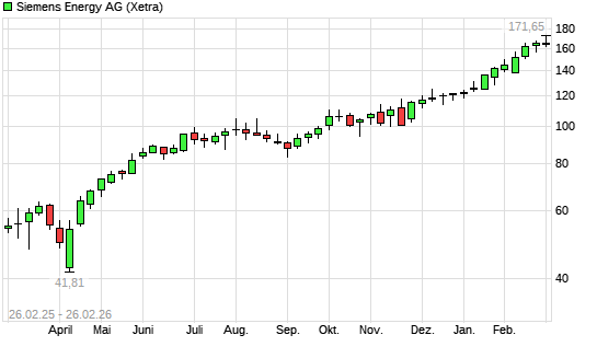 Mit dem Anstieg auf 168,65 EUR hat die Siemens Energy-Aktie (ISIN DE000ENER6Y0) am 25.02.2026 ein neues All-Time-High erreicht und damit den Kurs vom 18.02.2026 eingestellt.Die ...weiterlesen