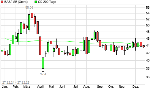 Mit dem Anstieg auf 43,65 EUR hat die BASF-Aktie am 26.12.2025 die 200-Tage-Linie nach oben gekreuzt.Die BASF-Aktie befand sich seit dem 22.12.2025 im langfristigen Aufwärtstrend und hat in ...weiterlesen