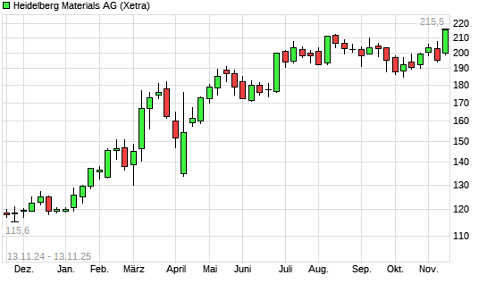 Mit dem Anstieg auf 213,40 EUR hat die Heidelberg Materials-Aktie (ISIN DE0006047004) am 12.11.2025 ein neues All-Time-High erreicht und damit den Kurs vom 08.08.2025 eingestellt.Die Heidelberg ...weiterlesen