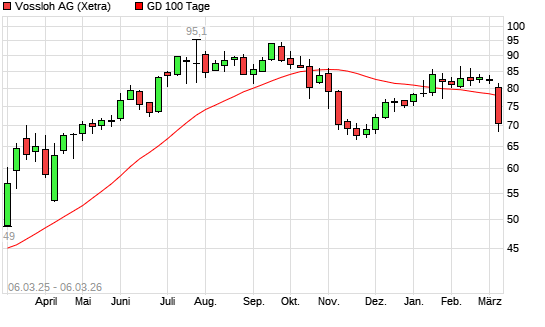Mit dem Rücksetzer auf 75,80 EUR hat die Vossloh-Aktie am 05.03.2026 die 100-Tage-Linie nach unten gekreuzt.Die Vossloh-Aktie befindet sich seit dem 02.03.2026 im ...weiterlesen