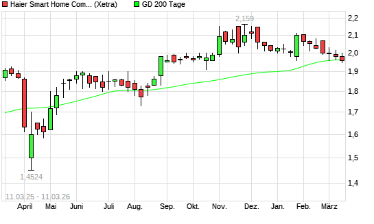 Mit dem Anstieg auf 1,97 EUR hat die Qingdao Haier-Aktie am 10.03.2026 die 200-Tage-Linie nach oben gekreuzt.Die Qingdao Haier-Aktie befand sich seit dem 09.03.2026 im ...weiterlesen