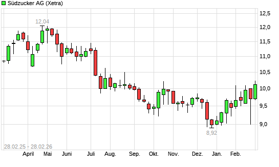 Mit dem Anstieg auf 10,16 EUR hat die Südzucker-Aktie (ISIN DE0007297004) am 27.02.2026 ein neues 6-Monats-Hoch erreicht und damit den Kurs vom 04.09.2025 eingestellt.Die ...weiterlesen