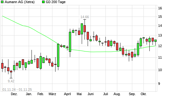 Mit dem Rücksetzer auf 11,74 EUR hat die Aumann-Aktie am 31.10.2025 die 200-Tage-Linie nach unten gekreuzt.Die Aumann-Aktie befand sich seit dem 16.10.2025 im langfristigen Aufwärtstrend ...weiterlesen