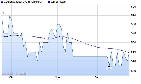 Mit dem Anstieg auf 550,00 EUR hat die Gelsenwasser-Aktie am 23.12.2025 die 38-Tage-Linie nach oben gekreuzt.Die Gelsenwasser-Aktie befindet sich seit dem 13.11.2025 im langfristigen Abwärtstrend ...weiterlesen