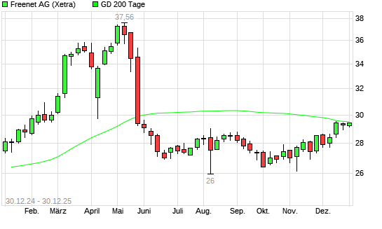 Mit dem Anstieg auf 29,60 EUR hat die Freenet-Aktie am 29.12.2025 die 200-Tage-Linie nach oben gekreuzt.Die Freenet-Aktie befand sich seit dem 22.05.2025 im langfristigen Aufwärtstrend und hat ...weiterlesen