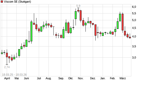 Mit dem Rücksetzer auf 3,90 EUR hat die Viscom-Aktie (ISIN DE0007846867) am 17.03.2026 ein neues 6-Monats-Tief erreicht und damit den Kurs vom 13.03.2026 eingestellt.Die ...weiterlesen