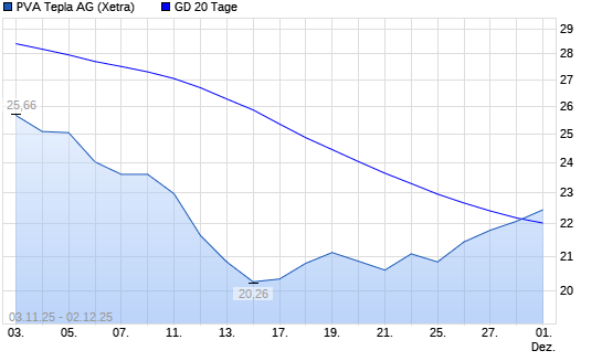 Mit dem Anstieg auf 22,38 EUR hat die PVA TePla-Aktie am 01.12.2025 die 20-Tage-Linie nach oben gekreuzt.Die PVA TePla-Aktie befindet sich seit dem 24.11.2025 im langfristigen Aufwärtstrend ...weiterlesen