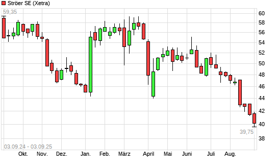Mit dem Rücksetzer auf 40,10 EUR hat die Ströer-Aktie (ISIN DE0007493991) am 02.09.2025 ein neues 12-Monats-Tief erreicht und damit den Kurs vom 01.09.2025 eingestellt.Die Ströer-Aktie ...weiterlesen