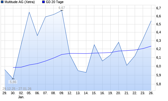 Mit dem Rücksetzer auf 6,19 EUR hat die Multitude-Aktie am 26.01.2026 die 20-Tage-Linie nach unten gekreuzt.Die Multitude-Aktie befindet sich seit dem 19.11.2025 im langfristigen Abwärtstrend ...weiterlesen