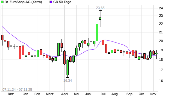 Mit dem Anstieg auf 18,44 EUR hat die Deutsche EuroShop-Aktie am 06.11.2025 die 50-Tage-Linie nach oben gekreuzt.Die Deutsche EuroShop-Aktie befindet sich seit dem 24.10.2025 im langfristigen ...weiterlesen