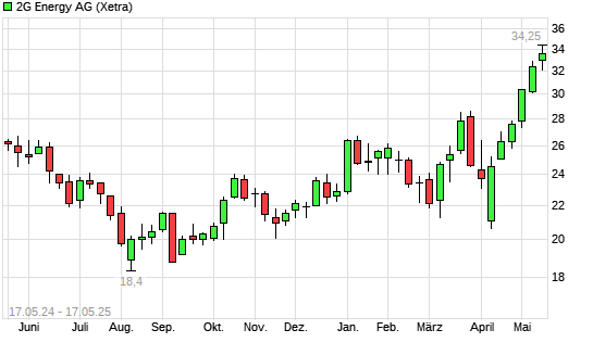 Mit dem Anstieg auf 33,85 EUR hat die 2G Energy-Aktie (ISIN DE000A0HL8N9) am 16.05.2025 ein neues All-Time-High erreicht und damit den Kurs vom 14.05.2025 eingestellt.Die 2G Energy-Aktie befindet ...weiterlesen