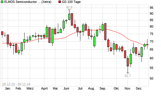 Mit dem Rücksetzer auf 66,90 EUR hat die Elmos Semiconductor-Aktie am 19.12.2024 die 100-Tage-Linie nach unten gekreuzt.Die Elmos Semiconductor-Aktie befindet sich seit dem 03.09.2024 im ...weiterlesen