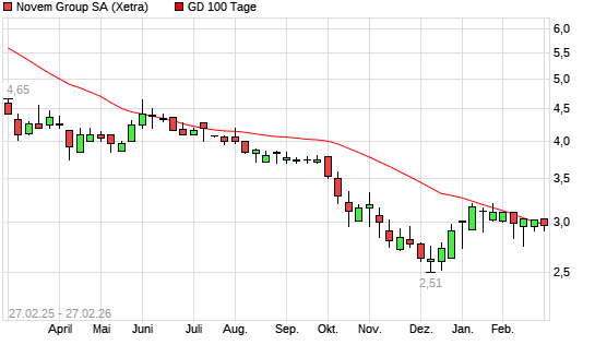 Mit dem Anstieg auf 3,02 EUR hat die Novem Group-Aktie am 26.02.2026 die 100-Tage-Linie nach oben gekreuzt.Die Novem Group-Aktie befindet sich seit dem 20.12.2024 im ...weiterlesen