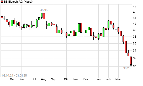 Mit dem Rücksetzer auf 31,30 EUR hat die BB Biotech-Aktie (ISIN CH0038389992) am 02.04.2025 ein neues 10-Jahres-Tief erreicht und damit den Kurs vom 01.04.2025 eingestellt.Die ...weiterlesen